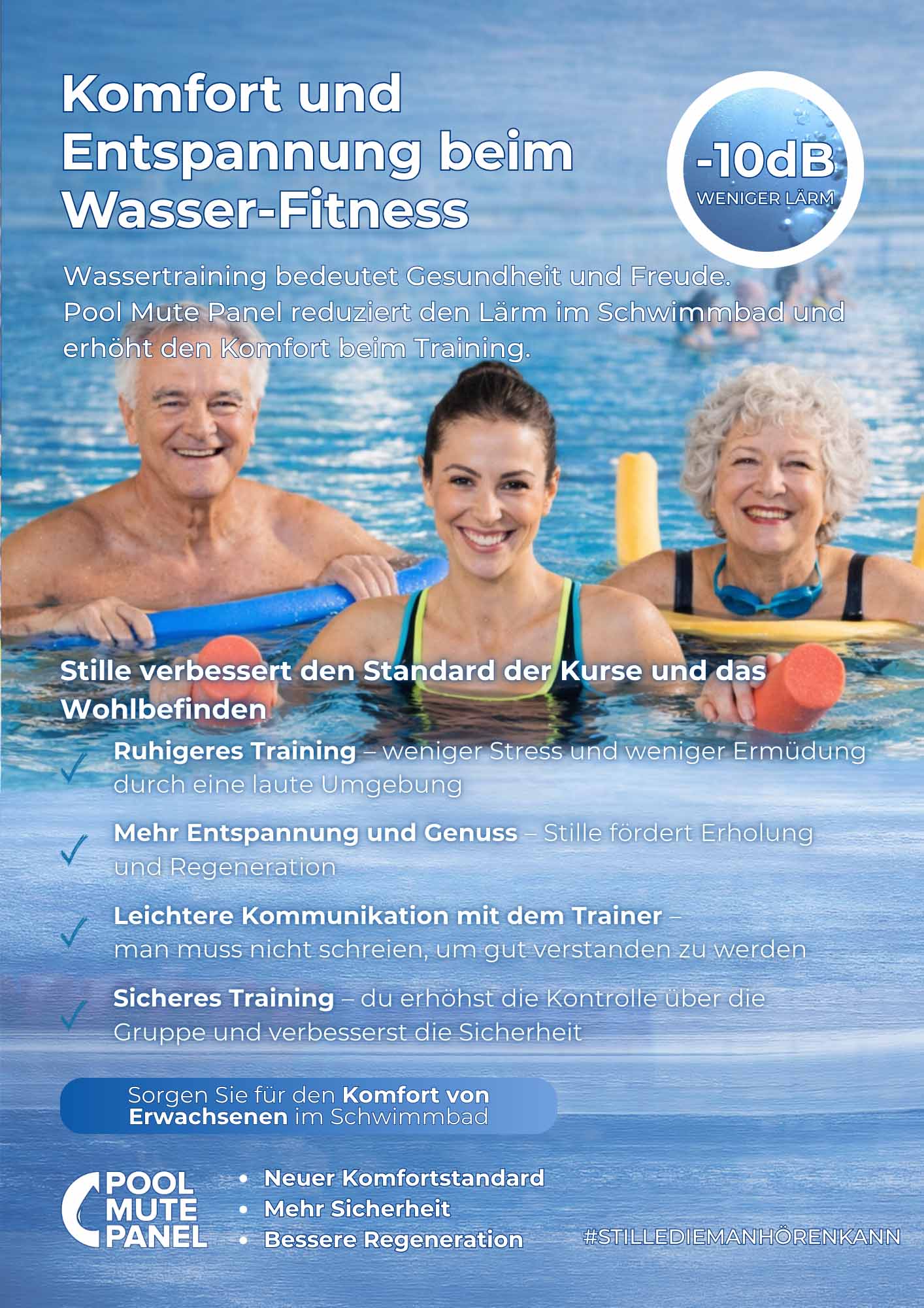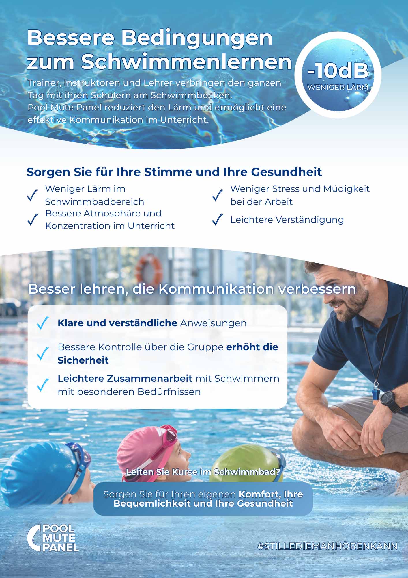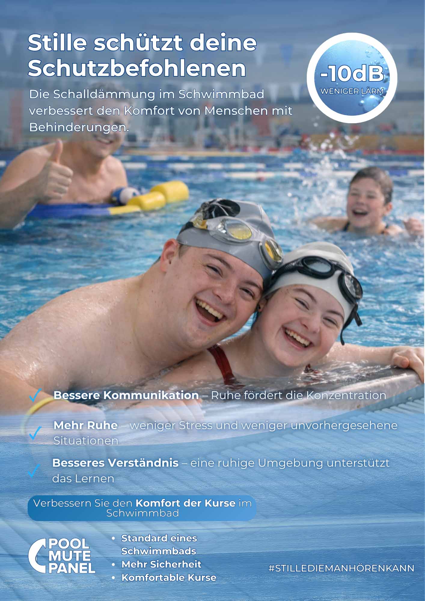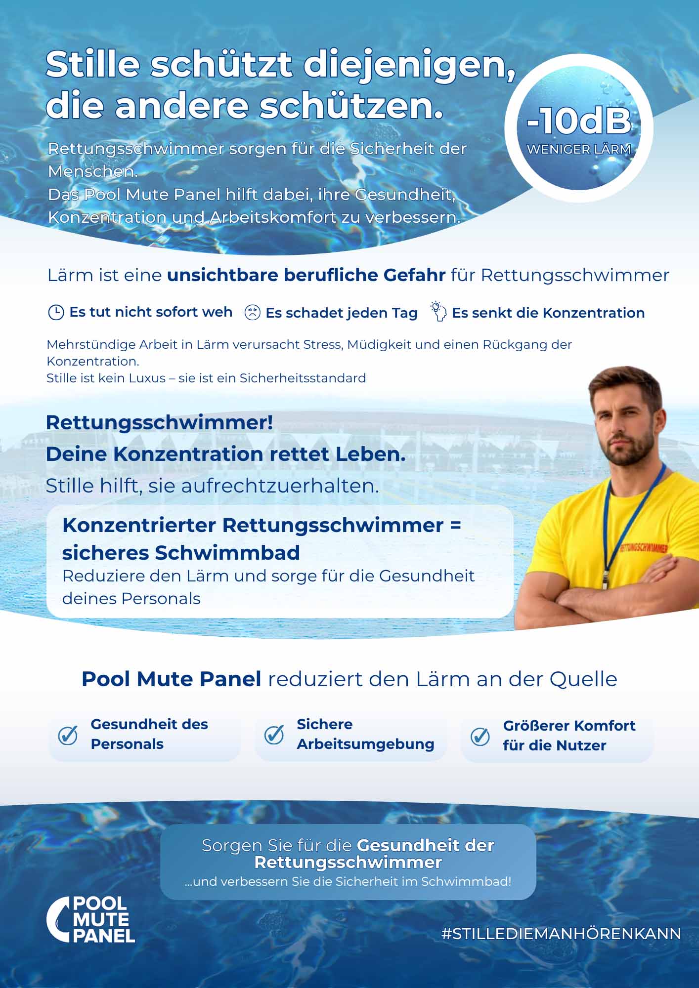 Die Reduzierung des Lärms direkt an der Quelle verbessert den Aufenthalt im Schwimmbad. Eine leisere Umgebung fördert die Konzentration, Entspannung sowie die sichere Arbeit des Personals.