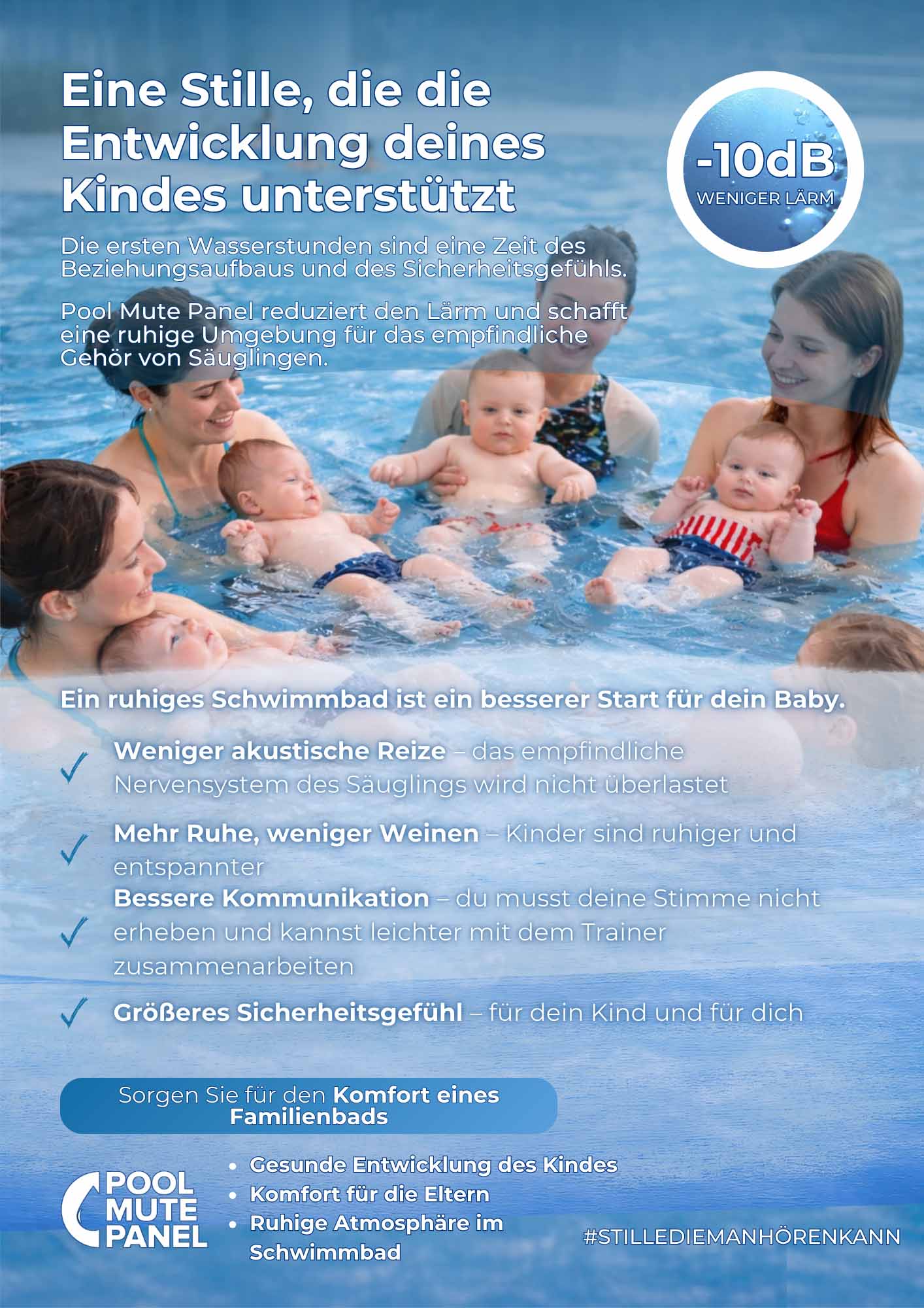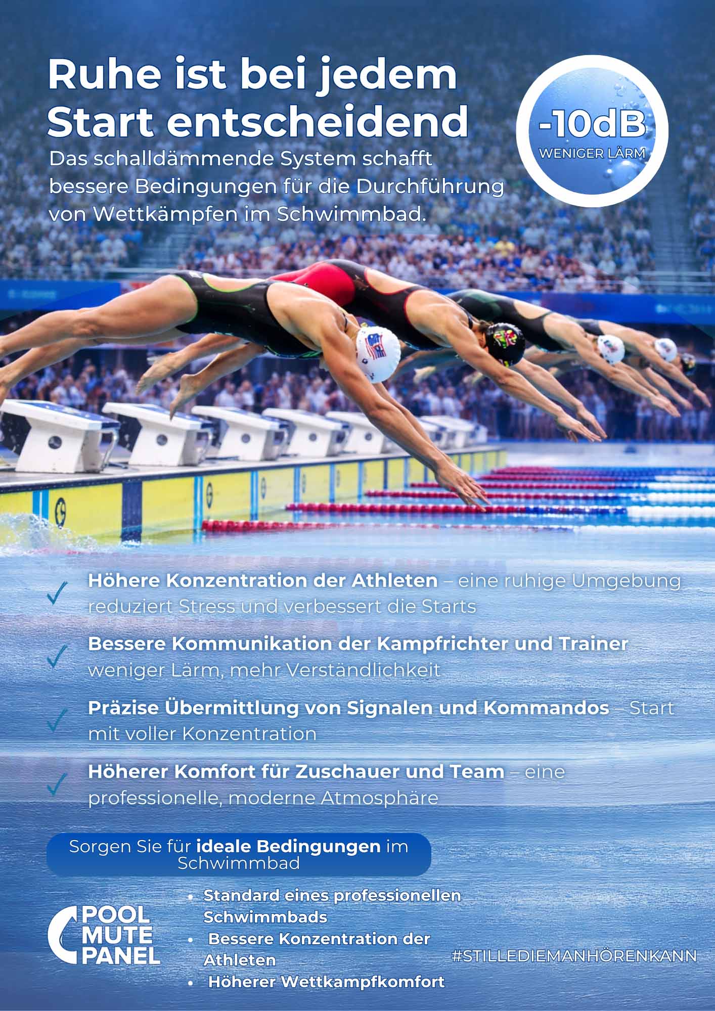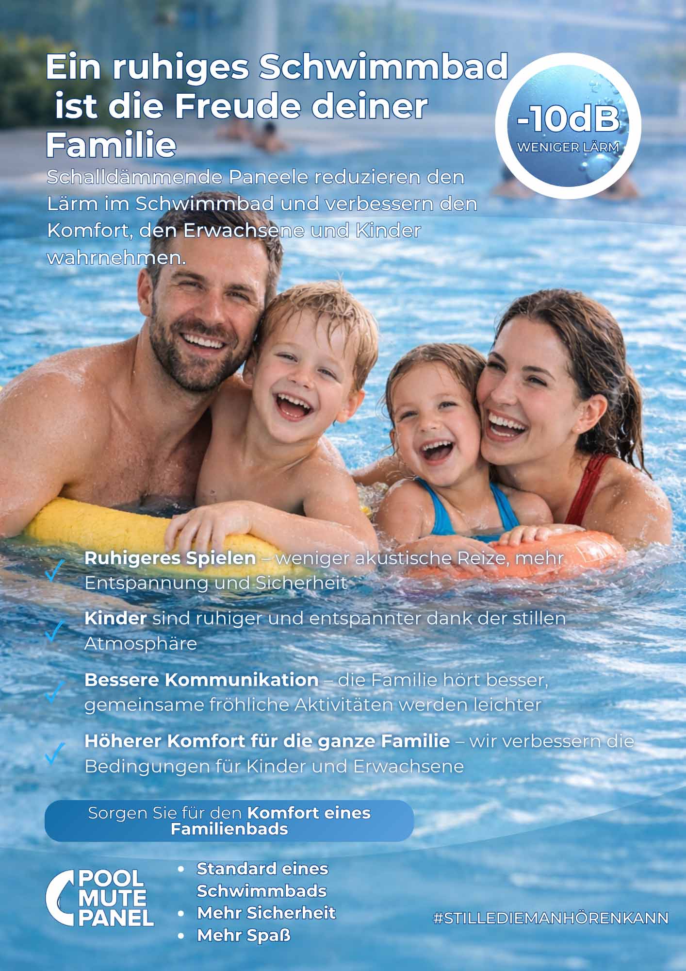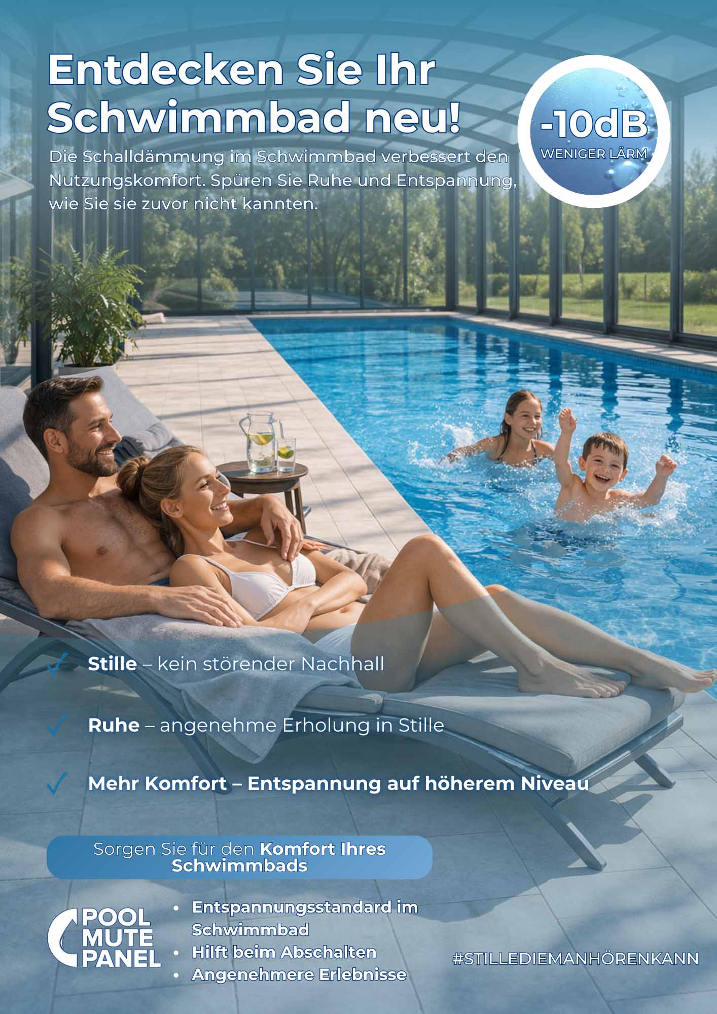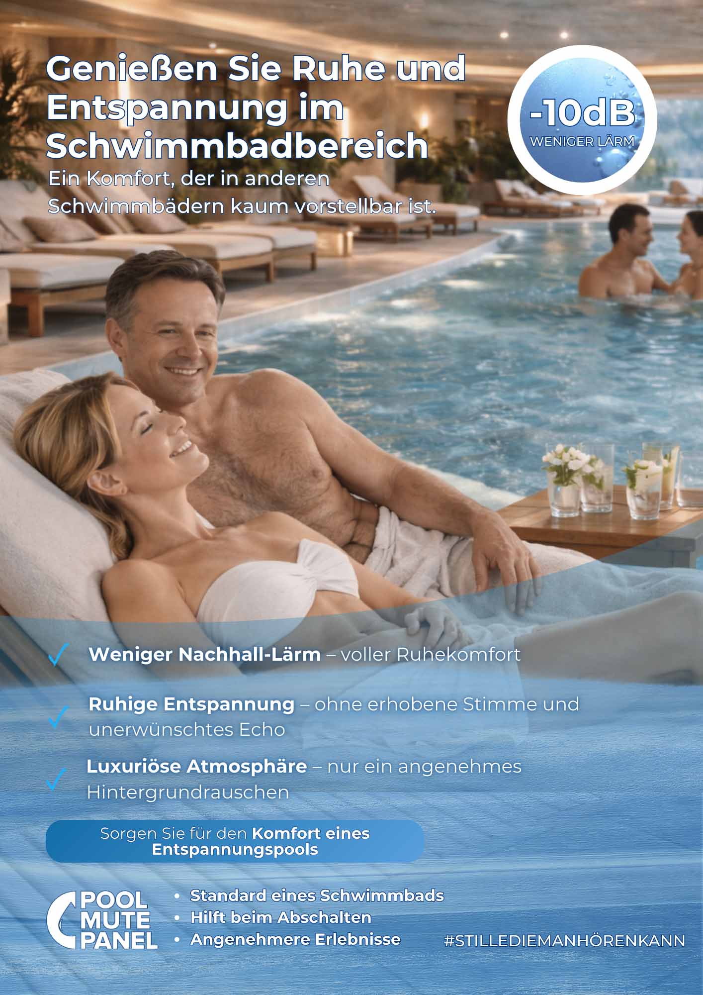 Die Dezibelskala ist logarithmisch, daher kann selbst eine geringe Senkung des Geräuschpegels deutlich wahrnehmbar sein. Eine Lärmreduzierung um etwa 10 dB wird vom menschlichen Ohr als eine bis zu halb so laute Umgebung wahrgenommen, was den Aufenthalt im Schwimmbad erheblich komfortabler macht.